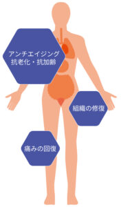 アンチエイジング、抗老化、抗加齢といった効果により、フレイルやプレフレイルといった加齢に伴う身体機能の低下の改善が期待できます。