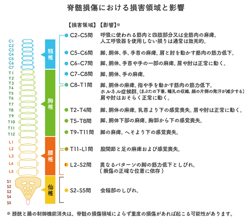 脊髄損傷における損傷レベルと影響