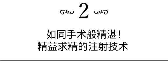 • 在玻尿酸注射方面,我们能做到0.025毫升为单位的微调,对整个面部进行毫米级的设计。
